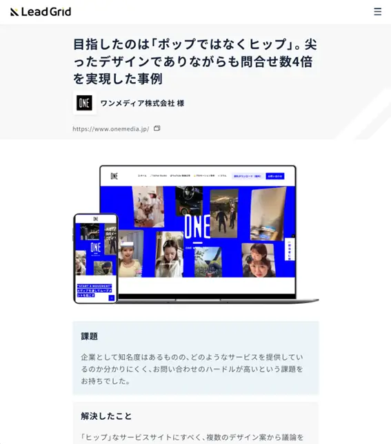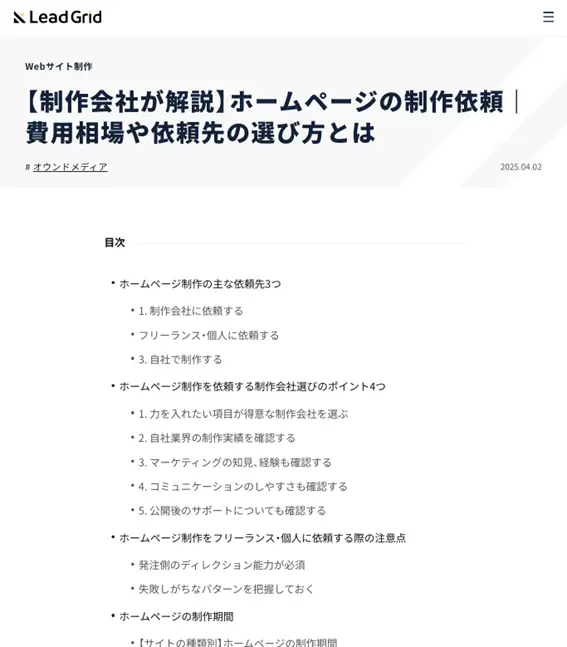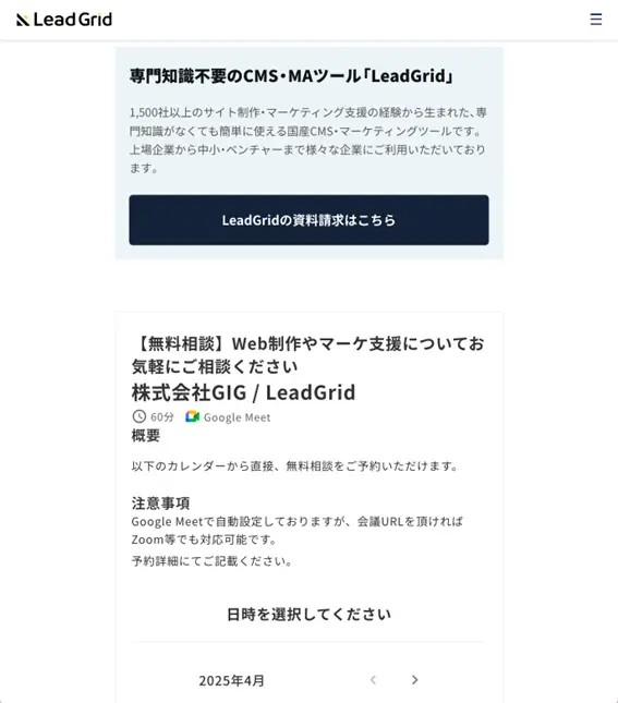 事例として、弊社(株式会社GIG)のLeadGridサービスサイトに掲載されているコンテンツを紹介します。