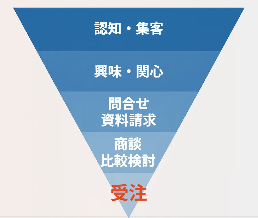 その後は「商談 比較検討」フェーズを経て最終的な判断がなされ、「受注」に至ります。