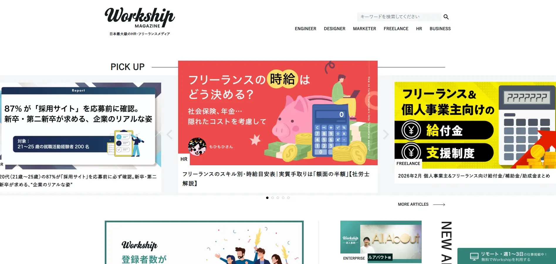 Workship MAGAZINEは、BtoC領域で展開するフリーランス・副業向けメディアです。2017年5月にリリースしました。