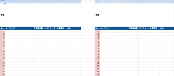 以上のプロセスによって精査した対策キーワードは、親キーワードと子キーワードをスプレッドシートで一覧化しましょう。記事制作など、以降の管理がしやすくなります。