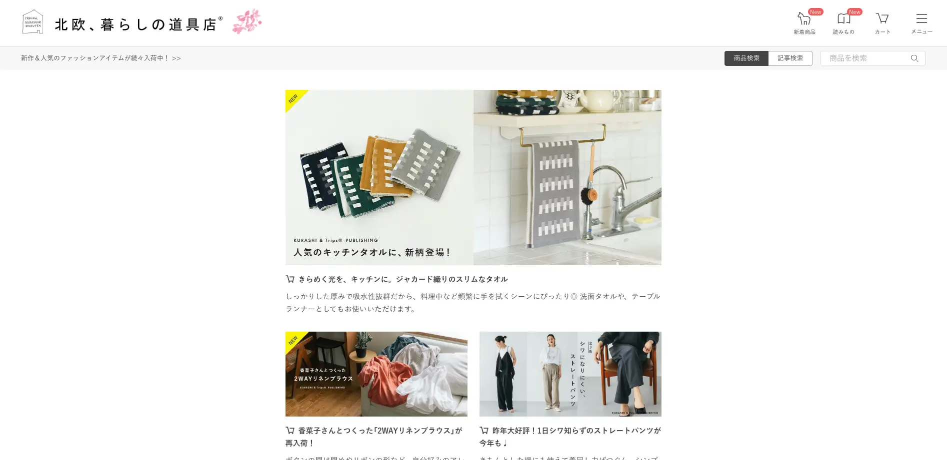 ECサイトとオウンドメディアを一体化させた最も有名な事例のひとつが「北欧、暮らしの道具店」です。北欧雑貨・生活雑貨を販売するECサイトでありながら、読み物・ポッドキャスト・映像コンテンツなど多彩なメディアコンテンツを展開しています。