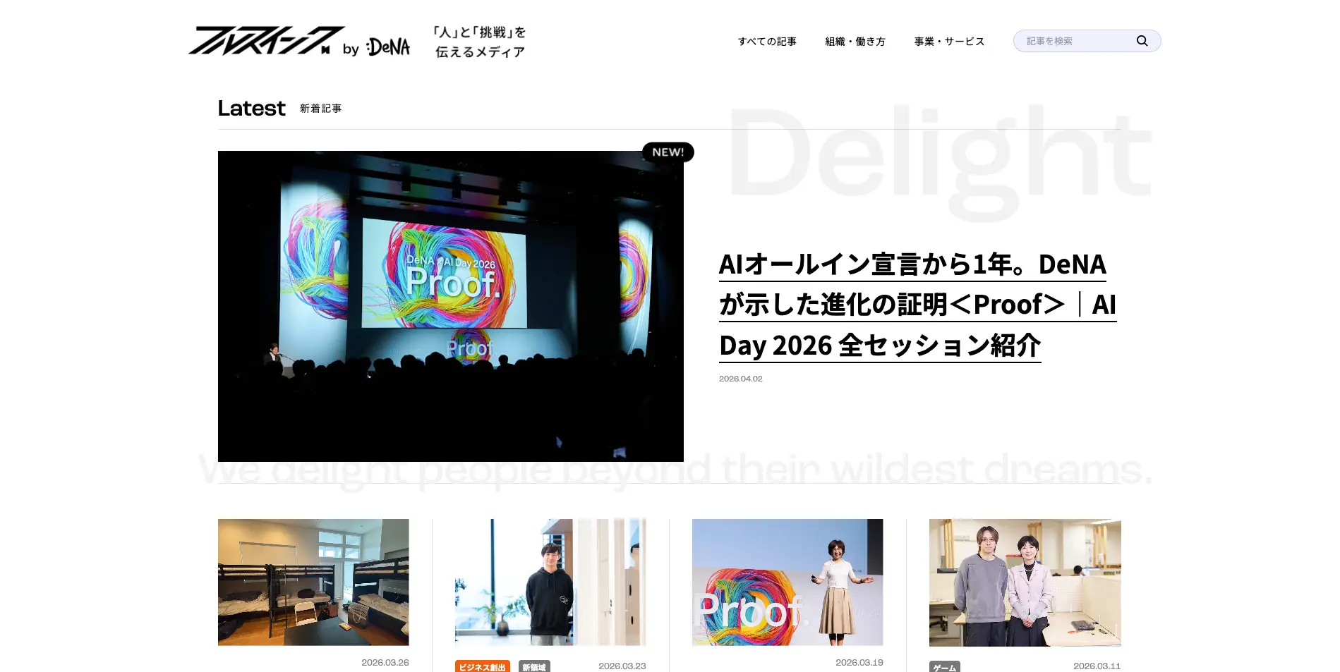 ▲出典:フルスイング株式会社ディー・エヌ・エー(DeNA)が運営するフルスイングは、社員インタビューやカルチャー紹介を通じた採用・ブランディングメディアです。DeNA社員の仕事論・キャリア観を深掘りし、「DeNAという場でどんな人が、どんな仕事をしているか」を可視化しています。