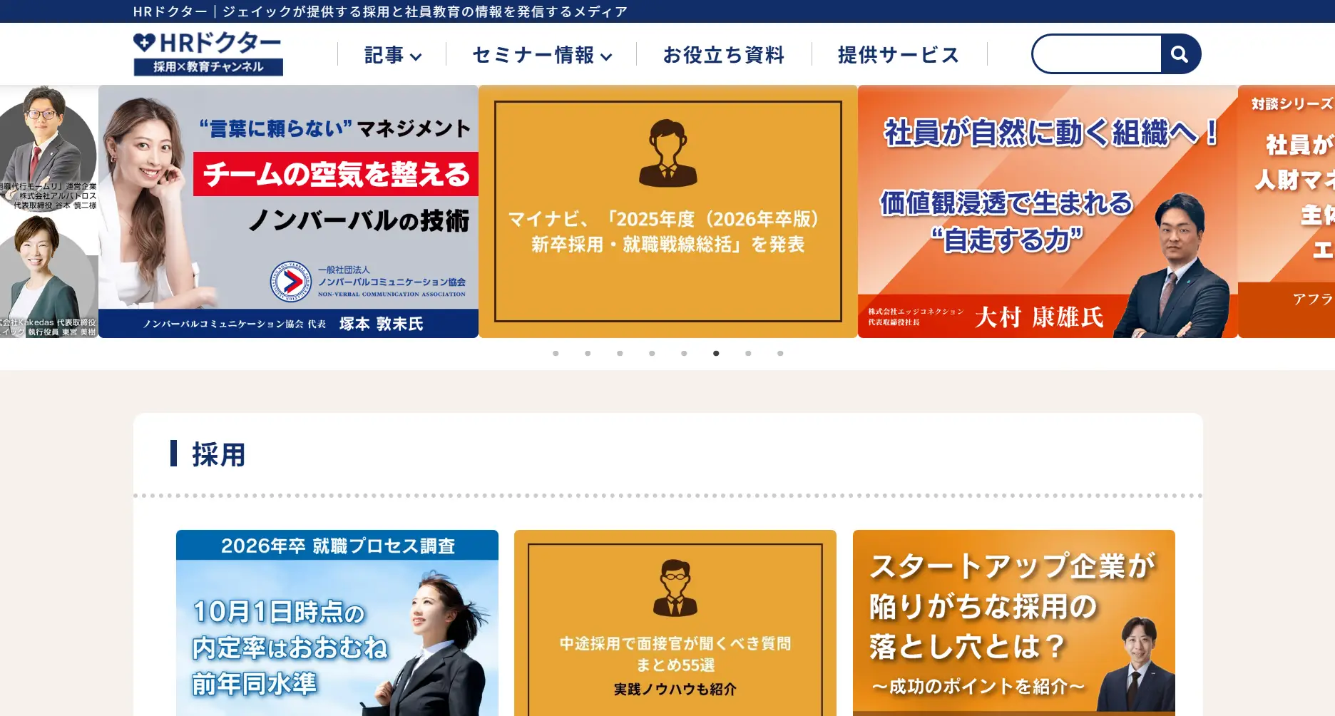 「HRドクター」は、採用と教育に強みを持つメディアとして、実践的なノウハウを発信しています。新卒・中途採用の両方をカバーしており、採用戦略の立案から実行まで、各段階で役立つ情報が得られます。