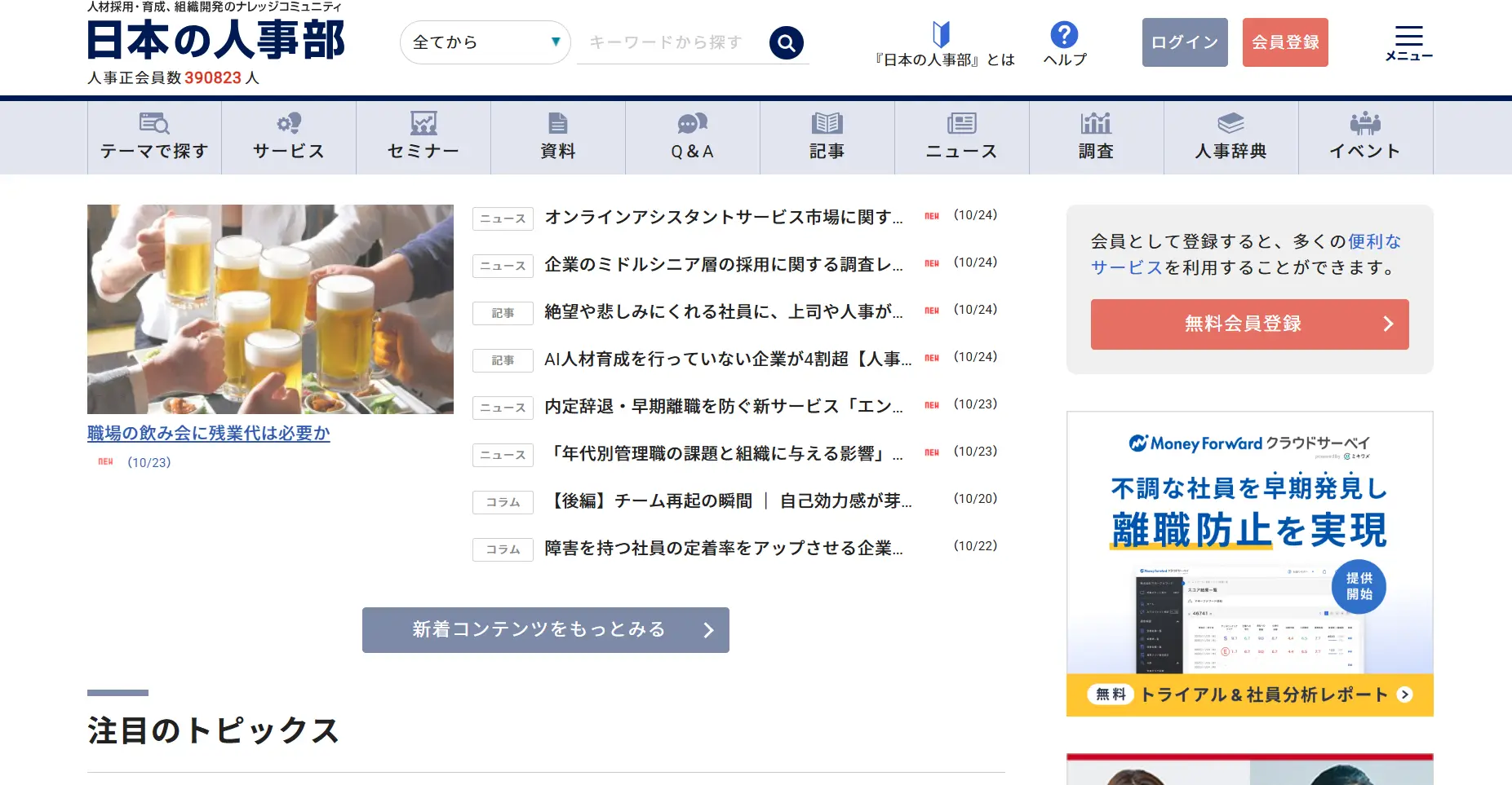 特に、企業のインタビュー記事が豊富で、事例を参考にしたい方に適しています。用語集も充実しており、人事関連の専門用語を確認する際の辞書としても活用可能です。