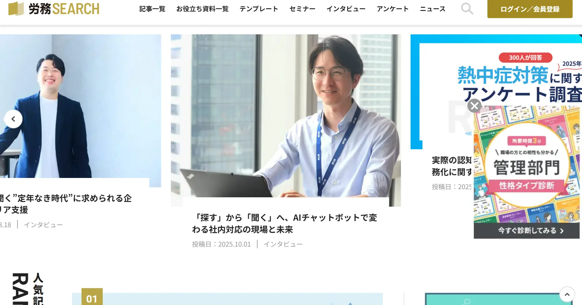 専門家によって監修されている記事も多く、分かりやすく具体的な内容が特徴です。特に、法改正への対応手順や書式のサンプルなど、すぐに使える情報が充実しています。