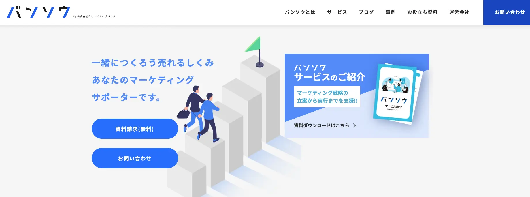 | 株式会社クリエイティブバンク(バンソウ) | 戦略設計から実行・改善までの一気通貫体制 | 半年でお問い合わせが3倍に増加 |