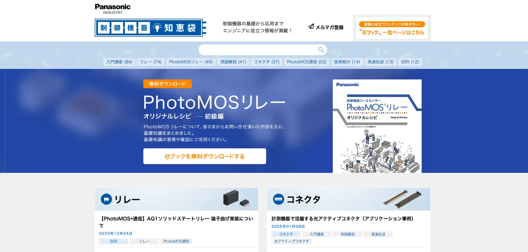 パナソニックが運営する「制御機器知恵袋」は、制御機器に関するQ&A形式のコンテンツを中心としたオウンドメディアです。ユーザーが実際に抱える疑問に答える形式で情報を整理することで、検索ニーズとの高いマッチングを実現しています。