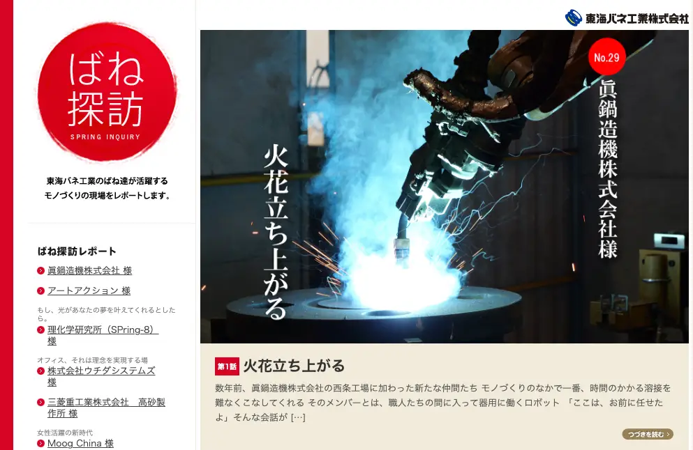 特殊バネメーカーの東海バネ工業が運営する「ばね探訪」は、バネの基礎知識から応用事例まで幅広く紹介するオウンドメディアです。中小製造業でも継続的な情報発信によってオウンドメディアを成功させられることを証明した事例といえます。