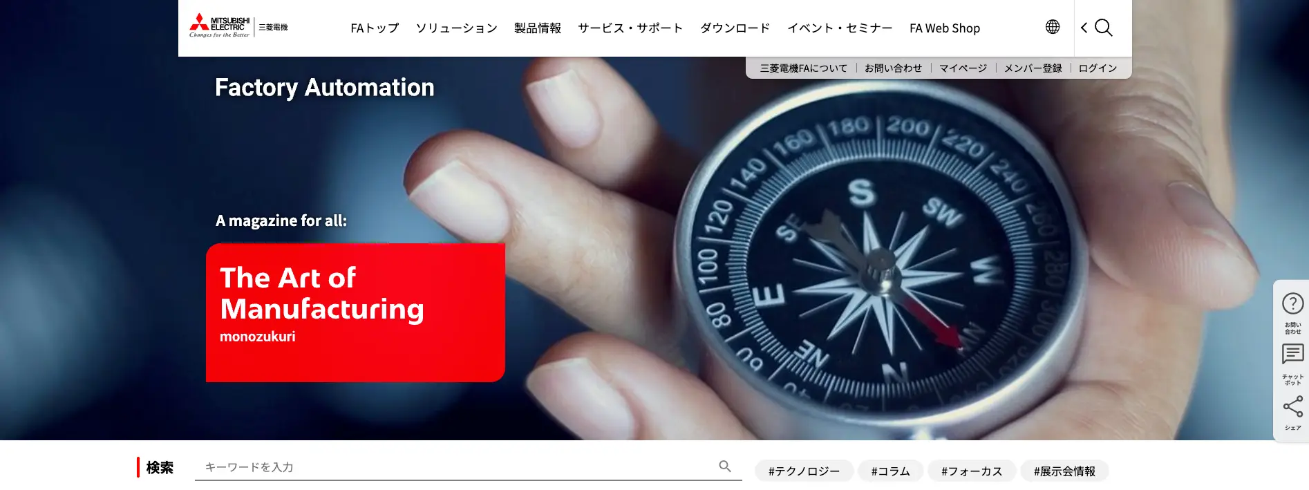三菱電機が運営する「The Art of Manufacturing―ものづくり」は、工場自動化(FA)に関する総合情報サイトです。製品情報だけでなく、業界動向やトレンド解説、導入事例など多角的な情報を発信しています。