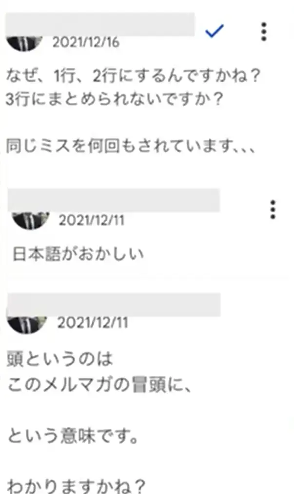 - ライター特有のクセがある(同じ文末表現を連続して使用する・文体がラフすぎる など)