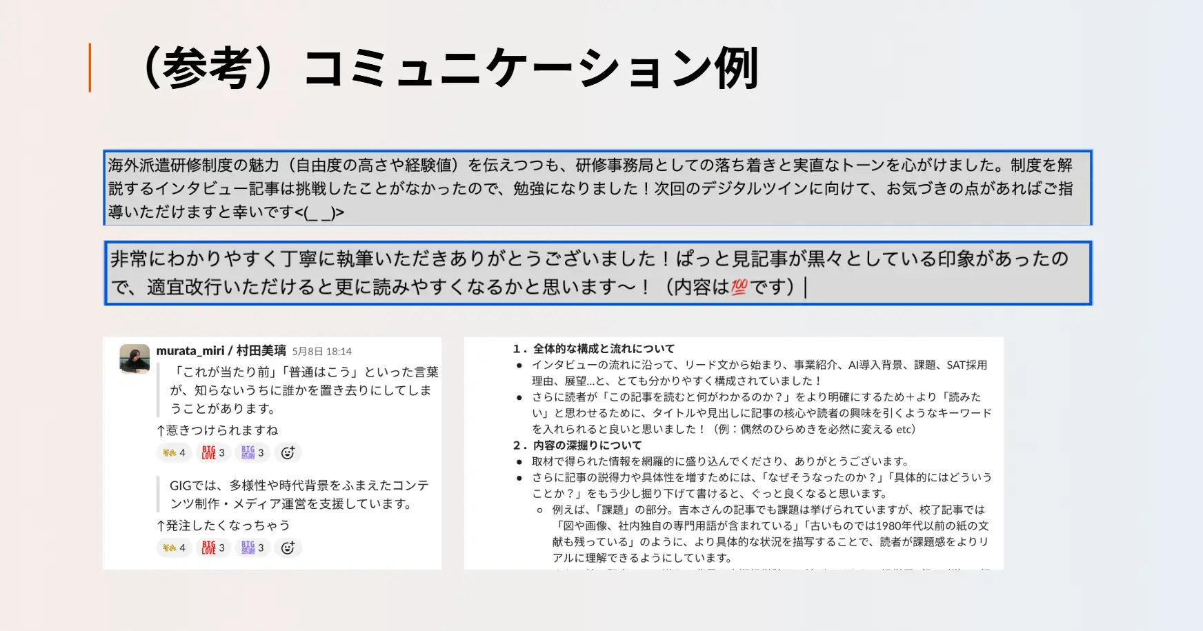 GIGの社員がフリーランス時代に受けたフィードバックの実例。