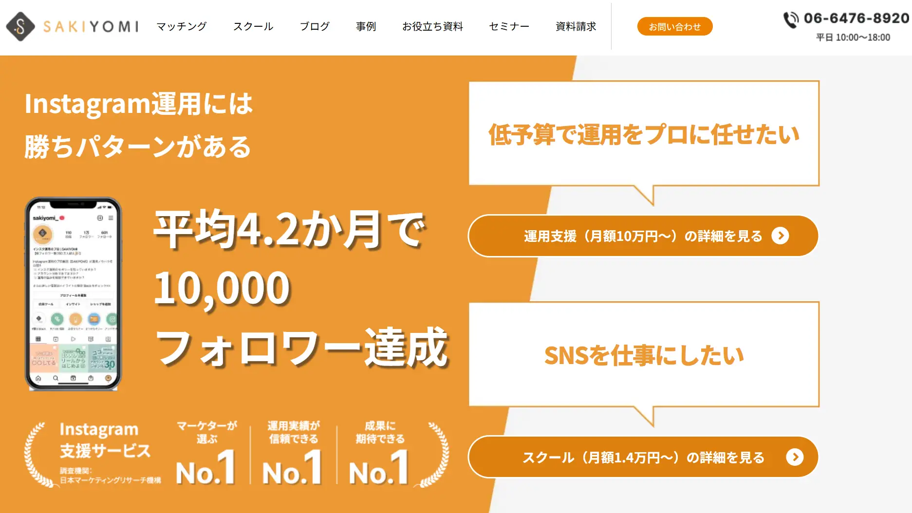 株式会社SAKIYOMIは、Instagram運用に特化した専門企業です。最新のInstagramアルゴリズムに基づいた運用により、平均4.2ヶ月で10,000フォロワー達成という高い実績を誇ります。数百のアカウント運用データから導いた独自のメソッドで、再現性高くフォロワーを増やせる点が大きな強みです。