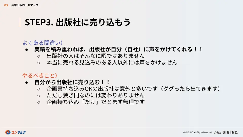 vol.3-2 商業出版ロードマップ - 3.出版社への売り込み方(企画書7要素とGIGのアプローチ手法)